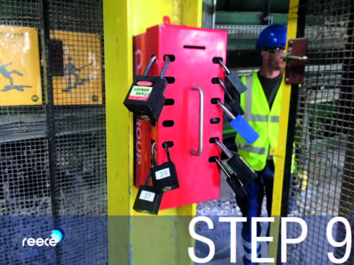 In accordance with your company’s procedures, energy isolation devices should be locked out and tagged. Make sure only devices supplied by the employer are used. Plant locks must be applied with an appropriate multi-hasp and this will then have personal locks applied for each person involved in the job. For larger jobs a lockout box may be needed to ensure the responsible person has control over a large number of padlocks and keys. Ideally a personal lock should be fitted with an appropriate safe isolation warning tag.