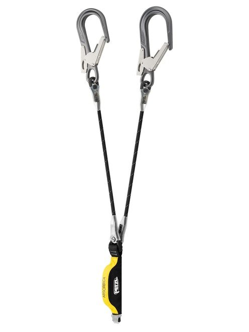 The 2020 Petzl Absorbica Y MGO European version is a twin leg lanyard with pre-installed MGO connectors. It provides continuous protection when you climb on a vertical structure or attach to a horizontal lifeline with a need to pass intermediate anchors.