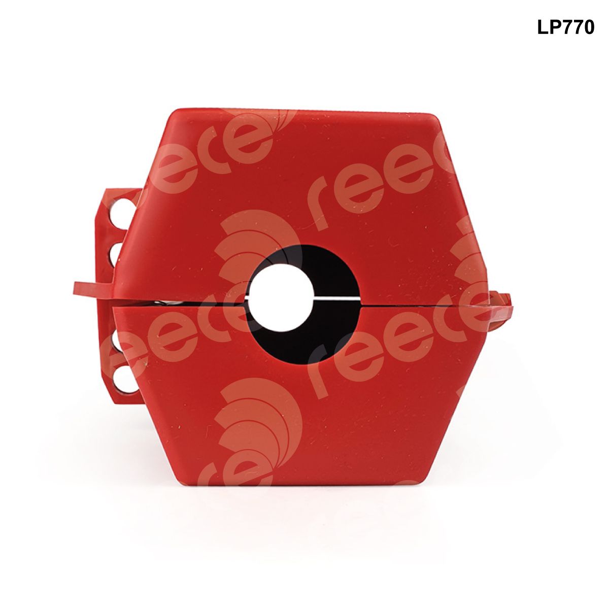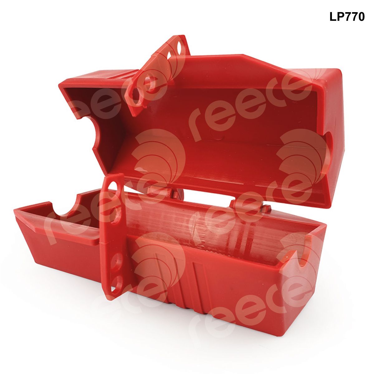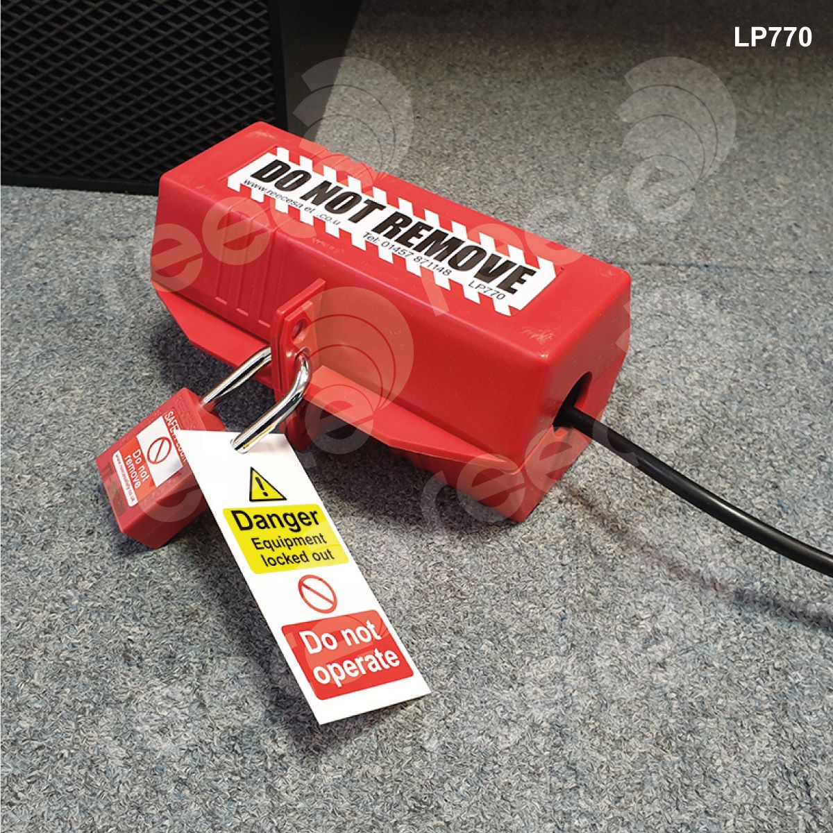 Completely encloses electrical plugs to prevent accidental reconnection. When closed the access hole will accept a cable up to a diameter of 25mm
