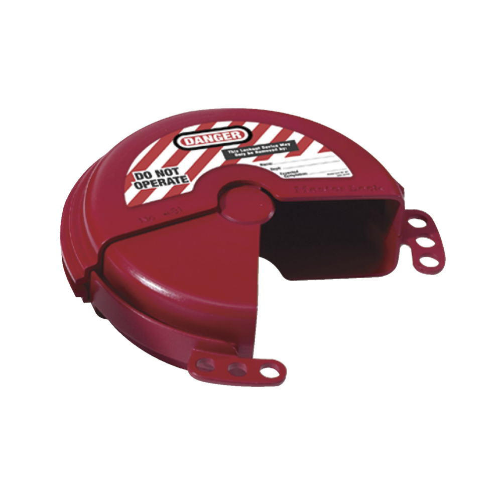 Simple to use. Place over the handwheel (Figure 1), rotate until closed and attach a padlock (Figure 2).