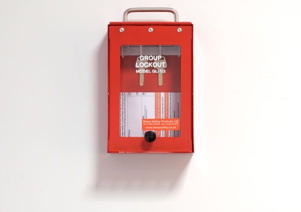 Steel Wall mounted or Portable Group Lockout Box - 4 hook. Colour Red.