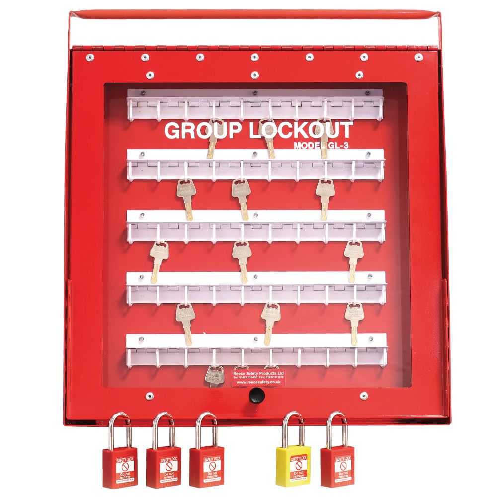 Steel Wall mounted or Portable Group Lockout Box - 50 hook. Colour Red.