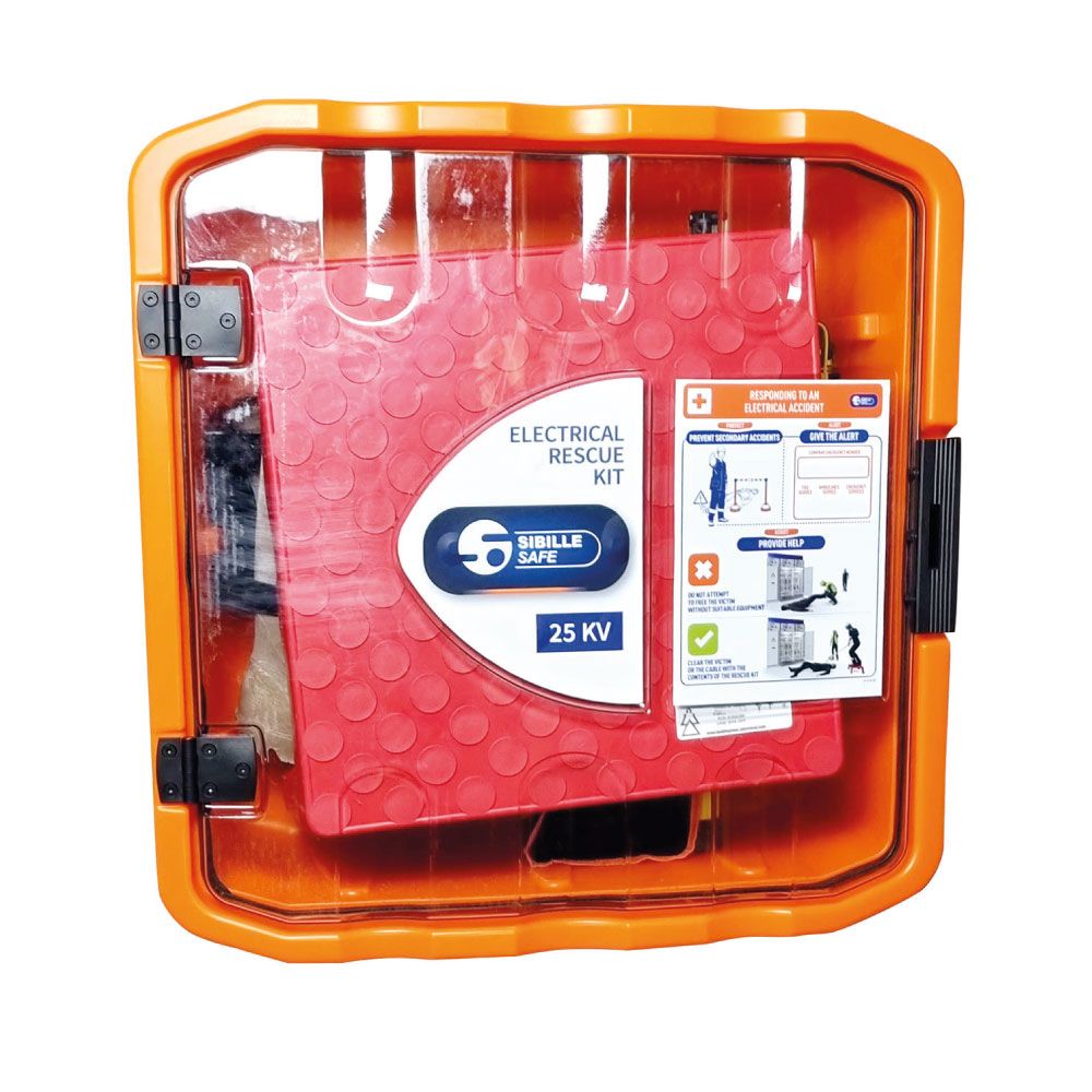 All the equipment necessary to enable a swift life-saving rescue, without endangering the rescuer, of someone involved in a live connection incident.